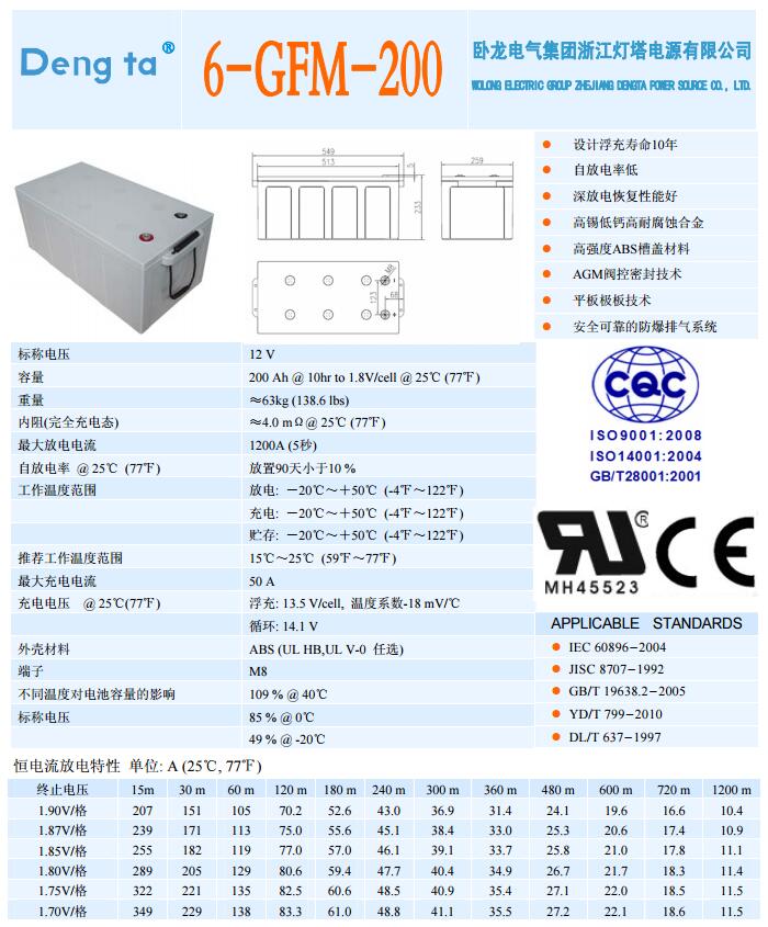 • 灯塔蓄电池6-GFM-200U(12V200AH)